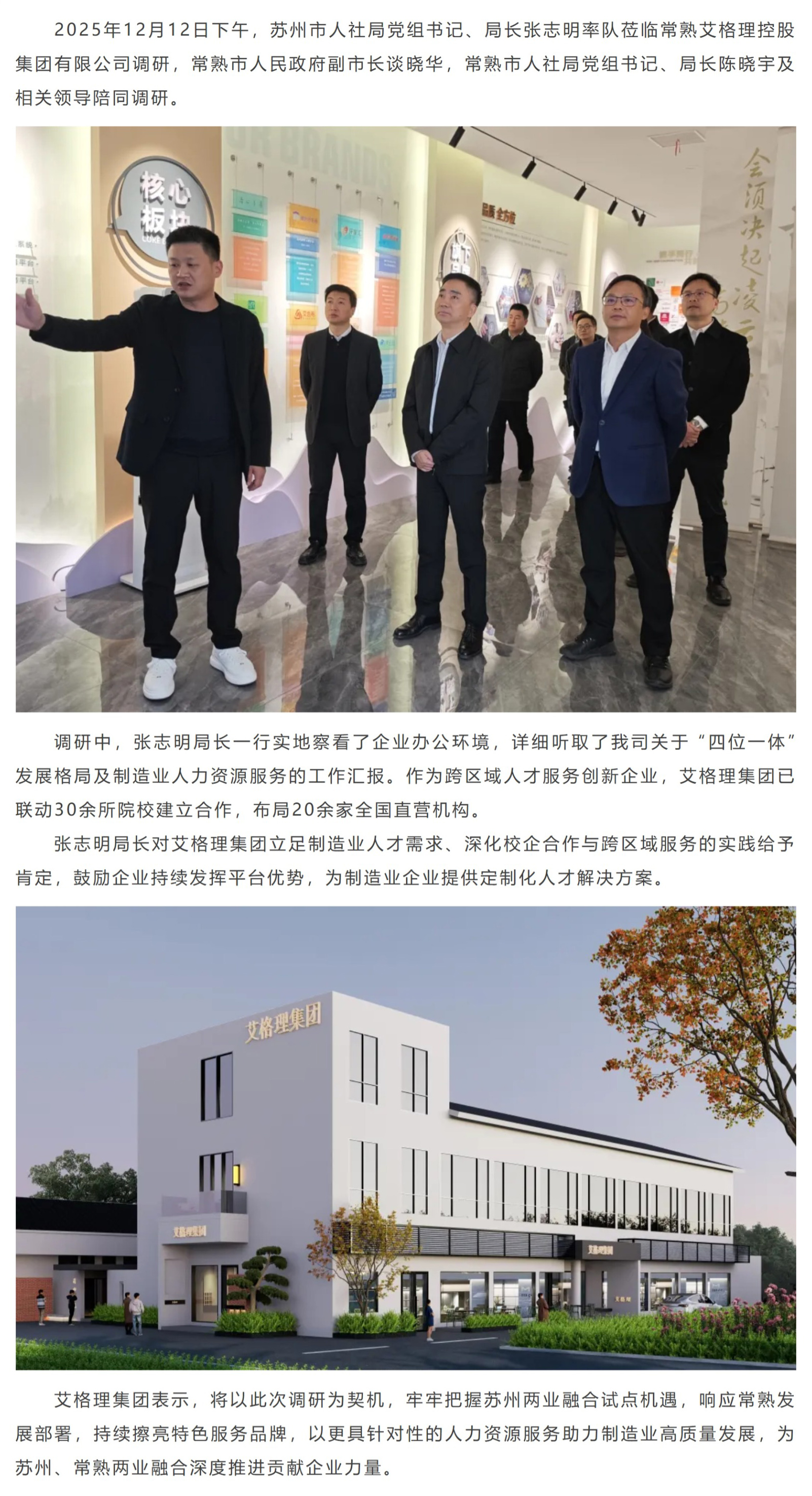 艾格理新闻 丨 苏州市人社局一行莅临艾格理集团调研